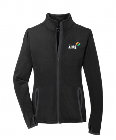 Keep moving in this moisture-wicking, soft-brushed jacket that's flexible and features hits of contrast color throughout. 6.8-ounce, 90/10 poly/spandex jersey.